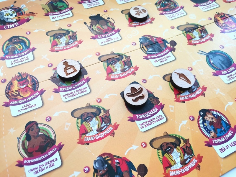 Поскольку эта игра алкогольная, она имеет возрастное ограничение 18+. В механику заложен принцип «правда или действие». Игроки поочередно бросают кости и передвигаются на столько клеток вперед, сколько выпало на кубиках. Пабло-выдумщик – особенная ячейка на игровом поле. При попадании к Пабло игрок заранее выбирает, что ему больше нравится: ответить на вопрос или выполнить интересное задание. Сосед тянет карточку и зачитывает, что нужно сделать. А еще вы повстречаетесь с глупым Гринго, Эль Бандито и Срако, пьяным Конкистадором. Все эти ребята никому не дадут скучать на празднике. Когда кто-то достиг финиша – игра не заканчивается. Наступает главный момент развлечения – разбитие пиньяты. Думаете это так просто? Попробуйте сами.
