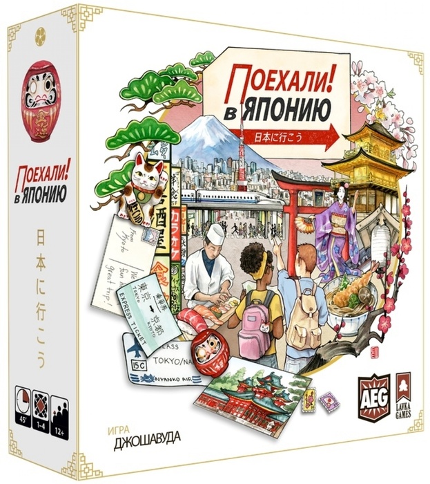 В игре «Поехали! В Японию» вы будете соревноваться в планировании лучшего отпуска в Токио и Киото. Партия состоит из 13 раундов, во время которых игроки берут карты мероприятий и распределяют их по разным дням недельного маршрута. Затем наступает финальный раунд, когда игроки отправляются в запланированное путешествие, активируя каждую из своих карт по порядку. Побеждает игрок, набравший к концу путешествия больше всех очков  за успешное перемещение по городам, получение максимальной отдачи от любимых занятий и достижение личных целей.  Соревнуйтесь с другими участниками или играйте в одиночку!