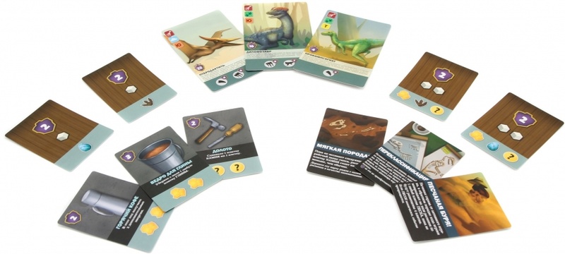 В настольной игре Раскопки игрок берёт на себя роль палеонтолога, целью которого становится найти как можно больше ценных останков. В свой ход игрок перемещает свою фишку по объёмному полю раскопок, составленному из блоков – различных пород, среди которых песок, глина и камни. Эти блоки необходимо двигать, чтобы расчистить поле раскопок. При этом действии затрачивается сила палеонтолога: её количество и количество плиток, которые одновременно можно подвинуть, зависит от веса породы. Во время раскопок игрок будет находить не только останки динозавров, но и различные ценные осколки ископаемых, которые приносят победные очки и обмениваются на рынке на полезные инструменты. А собранный целиком скелет динозавра принесёт дополнительные очки!