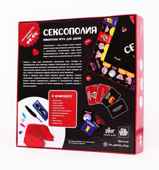 Сексополия – игра высокой степени откровенности. В ходе игры вы будет приобретать секс-поля, в дальнейшем, если попасть на поле своего партнера, придется заплатить штраф. Но расплачиваться нужно не деньгами, а исполнением различных желаний и сексуальными услугами. Все задания, несомненно, приятны для обеих сторон, некоторые из них направлены на разогрев чувственности, другие более дерзкие, требующие полной раскрепощенности. С Сексополией вас ждут горячие поцелуи, расслабляющие массажи, невиданные ласки, неизведанные позы и много других сладострастных вещей.