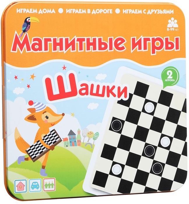 Шашки - легендарная настольная игра, которой увлекались еще египетские фараоны и короли древности. А теперь и вы станете талантливым игроком в Магнитные шашки! Вам понадобится лишь небольшая металлическая коробочка внутри которой скрывается полный игровой комплект: поле, фишки, правила. Все шашки снабжены магнитами, поэтому они прочно держатся на игровом поле. Ваша игра сохранится при любых условиях.