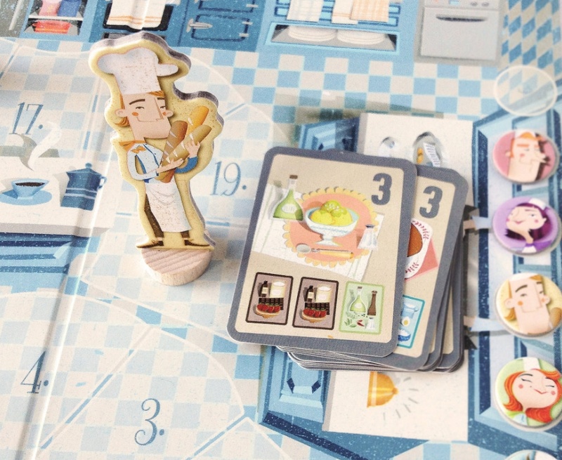 Игровое поле представляет собой кухню элитного ресторана, поделенную на 5 рабочих зон: прилавок с продуктами, где можно взять требуемые ингредиенты, дверь, возле которой происходит обмен с поставщиками, 2 зоны для приготовления блюд и раздаточная стойка для готовых шедевров. В процессе игры вы поймете, что истинный шеф-повар должен быть искусным стратегом. Каждый ход вы будете решать массу важных вопросов: достаточно ли у вас ингредиентов на руках, а может поменяться продуктами с поставщиком, приступить к приготовлению доступного блюда, или же лучше подождать более изысканного заказа. На кухне, как на войне – нельзя давать слабину. Докажите всем, что ваше кулинарное мастерство не победить.