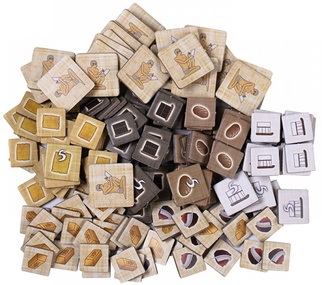 • 26 кубиков (5 чёрных, 5 белых, 5 коричневых, 5 жёлтых, 6 серых);