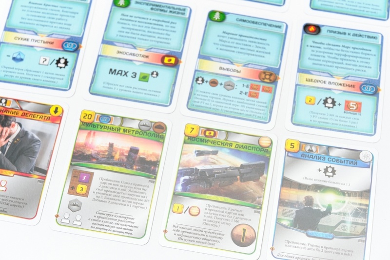 Политика по-марсиански. Это дополнение добавит в игру не только новые корпорации и проекты, но и глобальные события, которые будут влиять на всю игру в целом. Вместе с глобальными событиями, в игре появятся политические партии Марса, каждая из которых будет преследовать свои цели, и игроки смогут воспользоваться помощью политиков, поддержав ее кандидатов. На красной планете начинается абсолютно новая эпоха.