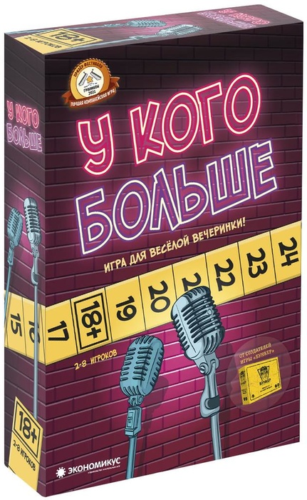Всего вас ждёт шесть сотен различных вопросов: умных и глупых, личных и философских, безобидных и провокационных. Большое разнообразие вопросов приводит к ещё большему разнообразию реакций и смешных ситуаций. Поэтому У кого больше — это идеальный пати-гейм для весёлой компании. Но не пытайтесь преувеличить свои подвиги, а то большой нос вырастет!
