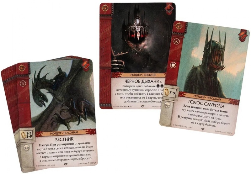 Практически все карты фракций Тьмы и часть локаций были изменены специально для новых режимов игры — под алгоритм бота. Вы будете использовать все компоненты базы: только замените часть карт старой колоды на новые из этого дополнения — и отправляйтесь в бой ради спасения всего Средиземья!