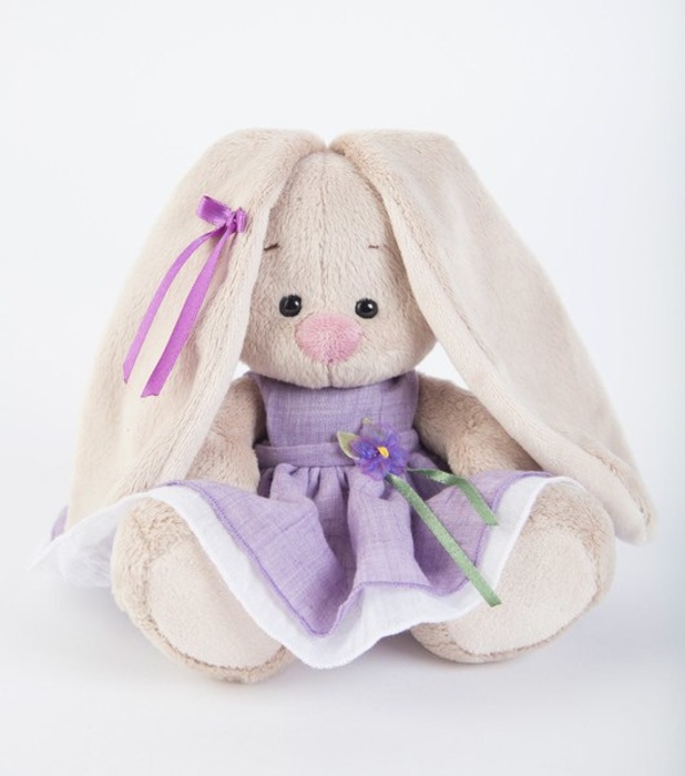 Игрушка мягкая Зайка Ми в фиолетовом платье с цветочком (малыш)