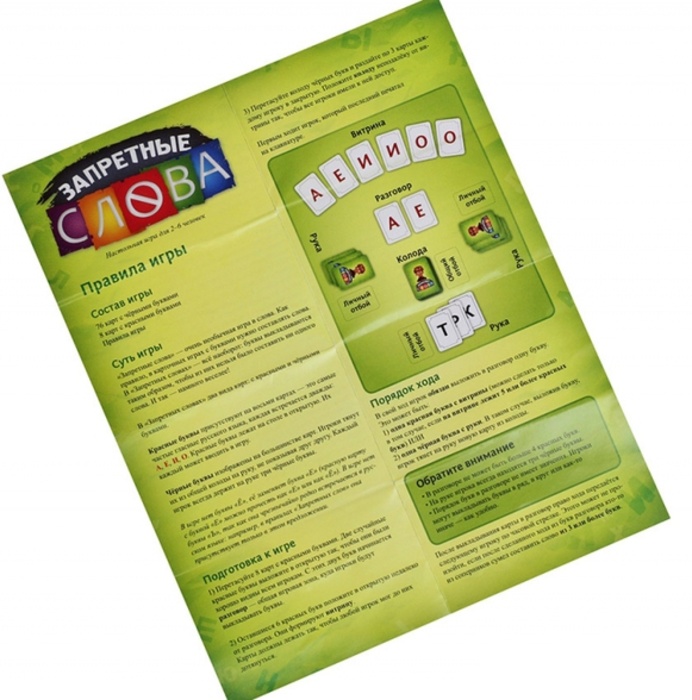 Настольная игра «Запретные слова» — это очень оригинальная семейная игра в слова. Особенностью игры является одна интересная деталь – если обычно, в подобных играх, игрок просто старается составлять слова, то здесь вам также придётся делать всё, чтобы ваши оппоненты не смогли составить ни одного!