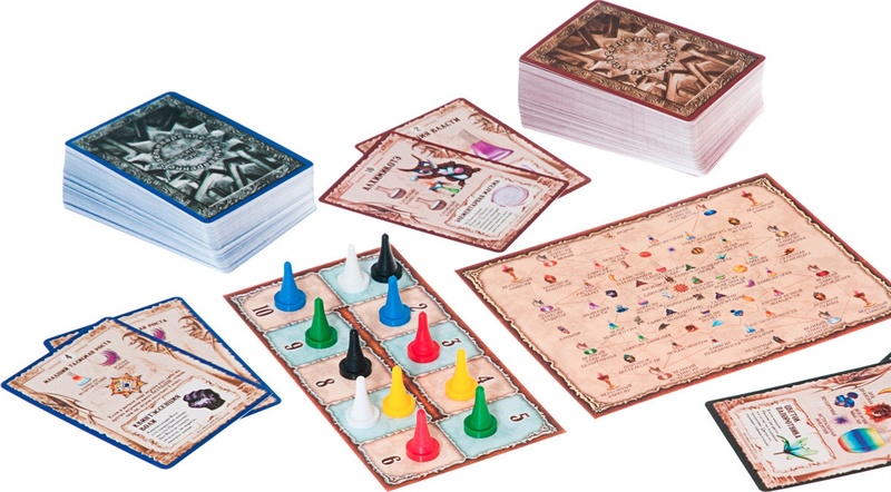 Зельеварение – это своего рода пасьянс, в котором игроки на основе карточек с ингредиентами и рецептами создают различные зелья, эликсиры, талисманы, животных, а некоторые умники даже замыслили сотворить философский камень. Тот, кто создаст больше всего полезных вещей – получит больше победных очков. А счастливчик, который опередит остальных, в завершение игры будет признан величайшим алхимиком. В подарочном издании вас ждет немало приятных сюрпризов. В упаковке находится базовая игра и два дополнения – Университетский курс и Гильдия алхимиков. Первое дополнение откроет игрокам новые действия, благодаря чему игровой процесс станет разнообразнее и несколько длиннее, а второй принесет новую колоду и несколько обновленных правил. Не может не радовать и уникальный персонаж – Котэ-алхимик, с помощью которого можно создавать сложные рецепты на 10 баллов.