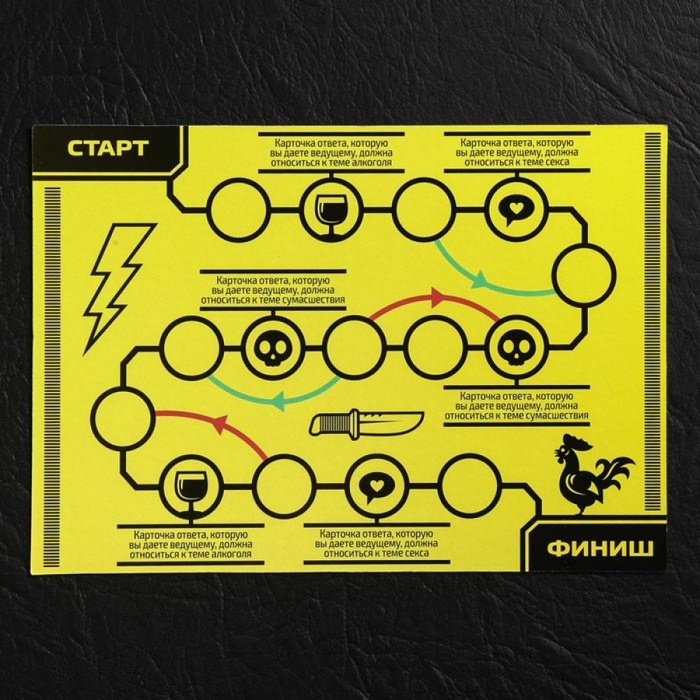 Правила очень просты: ведущий достает из колоды карточку темы, например, «Весь мир – игра. В нем женщины, мужчины – все __________», а остальным игрокам нужно подобрать из своих карт как можно более подходящий и смешной ответ, например, «порноактеры». В итоге, когда игроки начинают зачитывать свои варианты завершения фразы, стоит дикий хохот. «Весь мир – игра. В нем женщины, мужчины – все порноактеры». Тот, кто же окажется самым смешным по мнению ведущего, продвигается сразу на три поля вперед в сторону финиша.